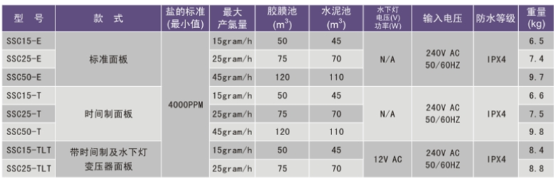 三種款式選擇;產(chǎn)氯量15g、小時、25g/小時、45g/小時.