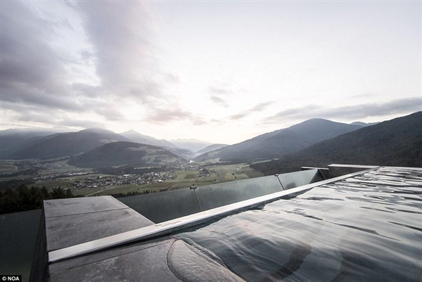 《每日郵報》報道稱,這個游泳池位于意大利南蒂羅爾(South Tyrol)的一家酒店內(nèi),其距離地面約12.2米高,池底部分使用玻璃面板,在泳池內(nèi)可以俯瞰整個雪山。